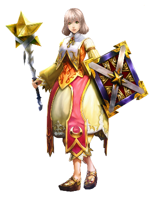 使用回復系魔法來回復同伴 HP 的聖職者並以鈍器作武器和盾牌作防禦。操作這個角色需要利用怪物的攻擊作為反擊。