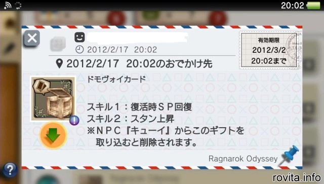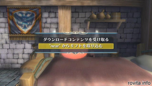 ↑然後在遊戲中如同使用 DLC 一樣與天波對話,選擇「"near" からギフトを取り込む」來加到物品欄中。